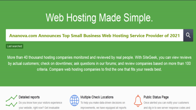Ananova.com Announces Top Small Business Web Hosting Service Provider of 2021